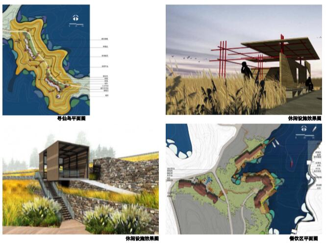 生態三島依托太極湖周邊極富魅力的寬闊水資源環境,以及現狀島上橘林、竹林等自然綠化景觀和未來丹江口水庫湖面上漲之后所形成的濕地景觀生態環境,以道家崇尚自然、尊重自 然為理念,在開發中堅持運用清潔能源以及可再生可降解的環保材料 ; 同時通過 “零碳”的開發模式, 對逍遙島、尋仙島和狂歡島從休閑度假、島嶼觀光、娛樂體驗等方面進行綜合開發,進而突出“構建 零碳生態示范旅游接待區”的發展目標。